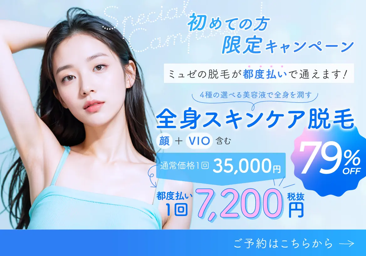 | 全身スキンケア美肌脱毛コース(襟足付き / 顔・VIOなし) | 60分 | 1回 22,000円 |