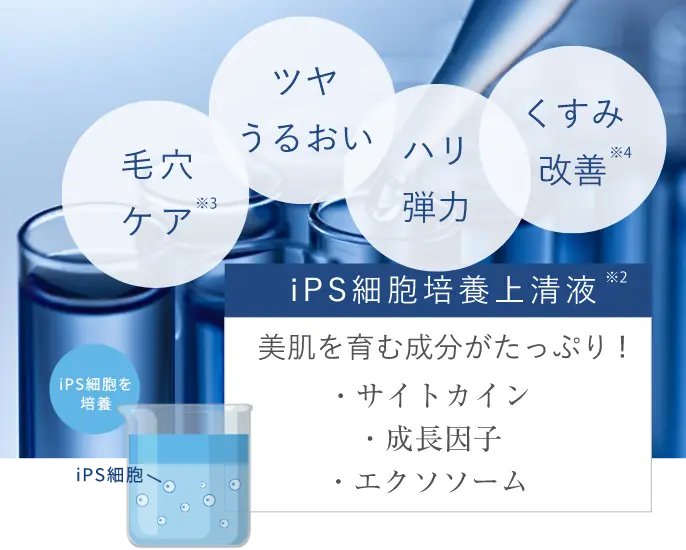 ※1特許技術を用いて培養されるiPS細胞の培養上清液を配合した