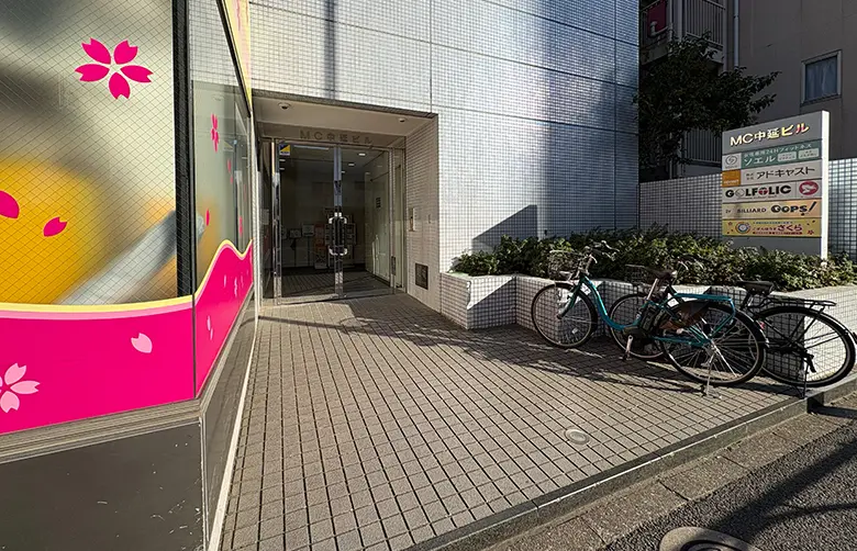 3. 300mほど進んだ先左手にある、1階に「こぱんはうすさくら」が入るグレーの建物「MC中延ビル」の3階。